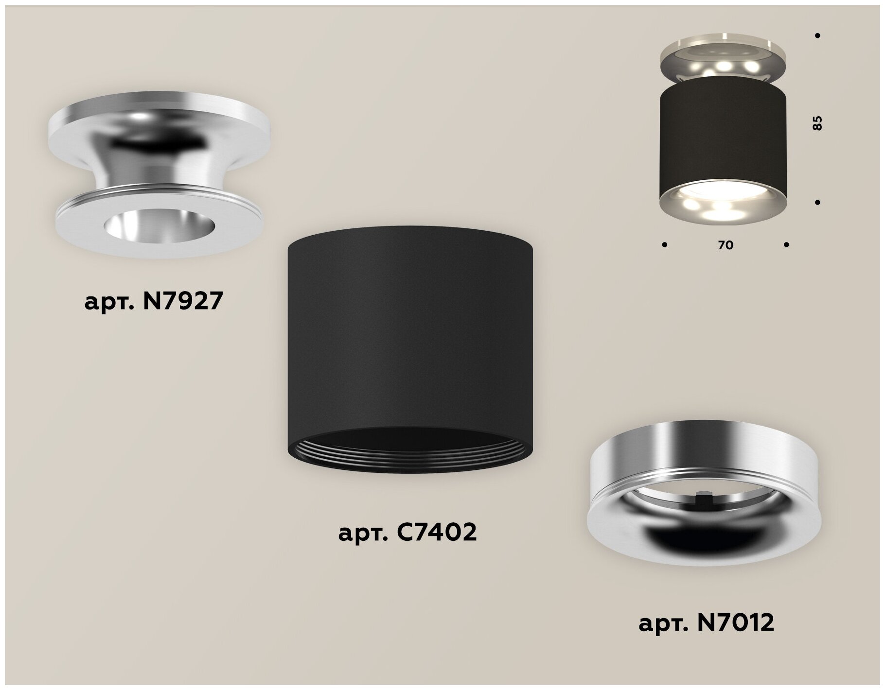 Комплект накладного светильника Ambrella light Techno Spot SBK/PSL черный песок/серебро полированное (N7927 C7402 N7012) XS7402083