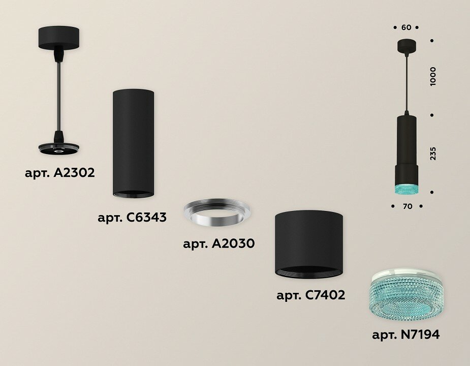 Комплект подвесного светильника Ambrella light Techno Spot SBK/BL черный песок/голубой (A2302 C6343 A2030 C7402 N7194) XP7402004
