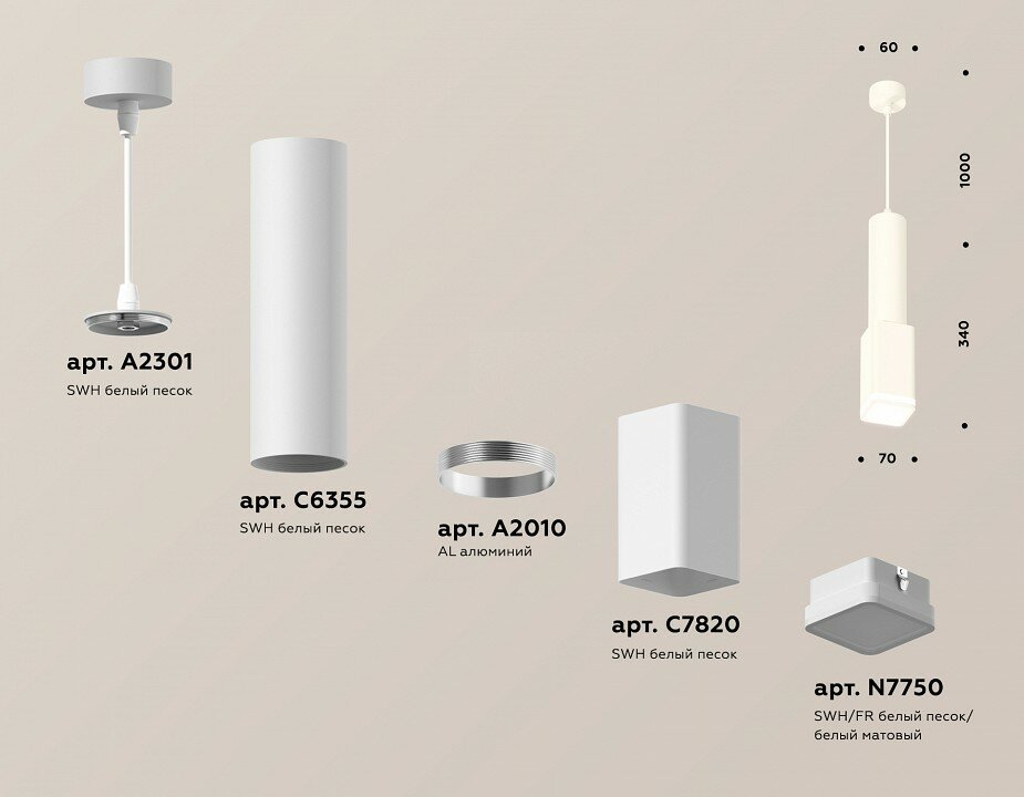 Комплект подвесного светильника Ambrella light Techno Spot SWH/FR белый песок/белый матовый (A2301 C6355 A2010 C7820 N7750) XP7820002