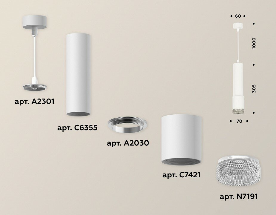 Сервис сравнения цен СкидкаГИД предлагает сравнить цены на товар «Комплект подвесного светильника Ambrella light Techno Spot SWH/CL белый песок/прозрачный (A2301 C6355 A2030 C7421 N7191) XP7421001»