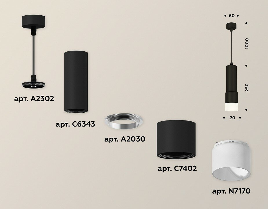 Сервис сравнения цен СкидкаГИД предлагает сравнить цены на товар «Комплект подвесного светильника Ambrella light Techno Spot SBK/FR черный песок/белый матовый (A2302 C6343 A2030 C7402 N7170) XP7402020»
