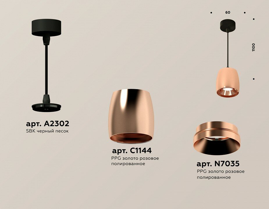 Комплект подвесного светильника Ambrella light Techno Spot PPG/SBK золото розовое полированное/черный песок (A2302 C1144 N7035) XP1144001