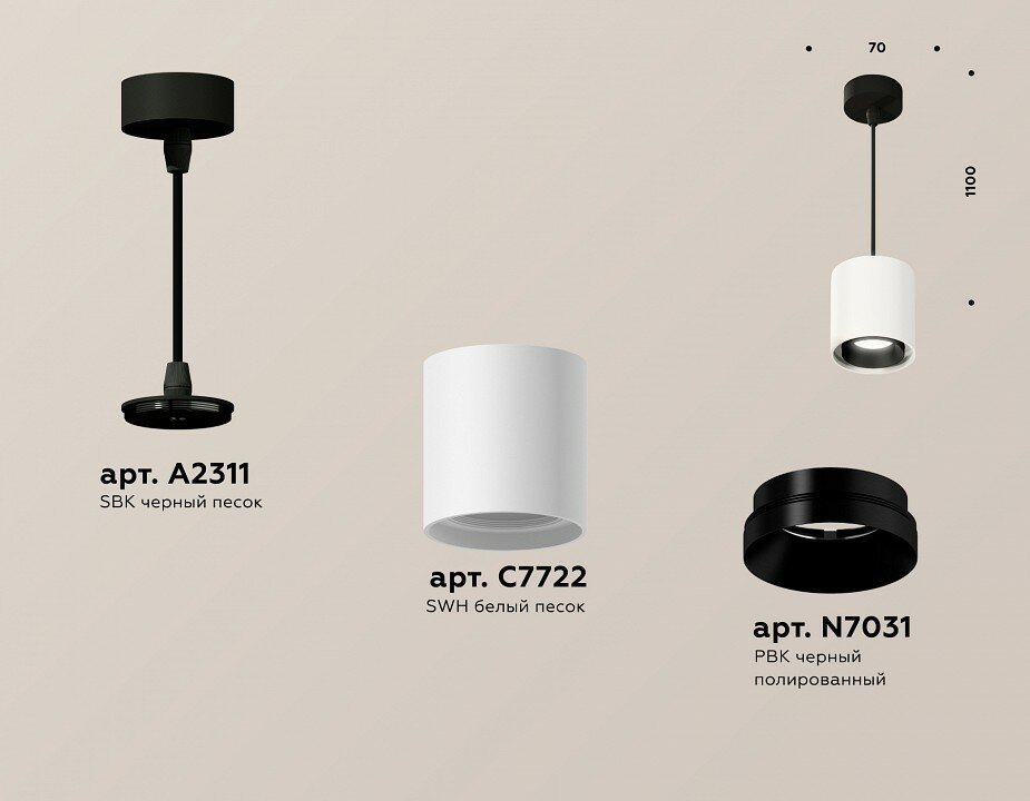 Комплект подвесного светильника Ambrella light Techno Spot SWH/PBK белый песок/черный полированный (A2311 C7722 N7031) XP7722001