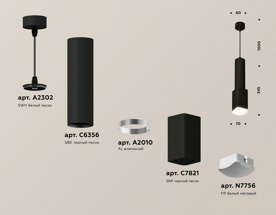 Сервис сравнения цен СкидкаГИД предлагает сравнить цены на товар «Комплект подвесного светильника Ambrella light Techno Spot SBK/FR черный песок/белый матовый (A2302 C6356 A2010 C7821 N7756) XP7821003»