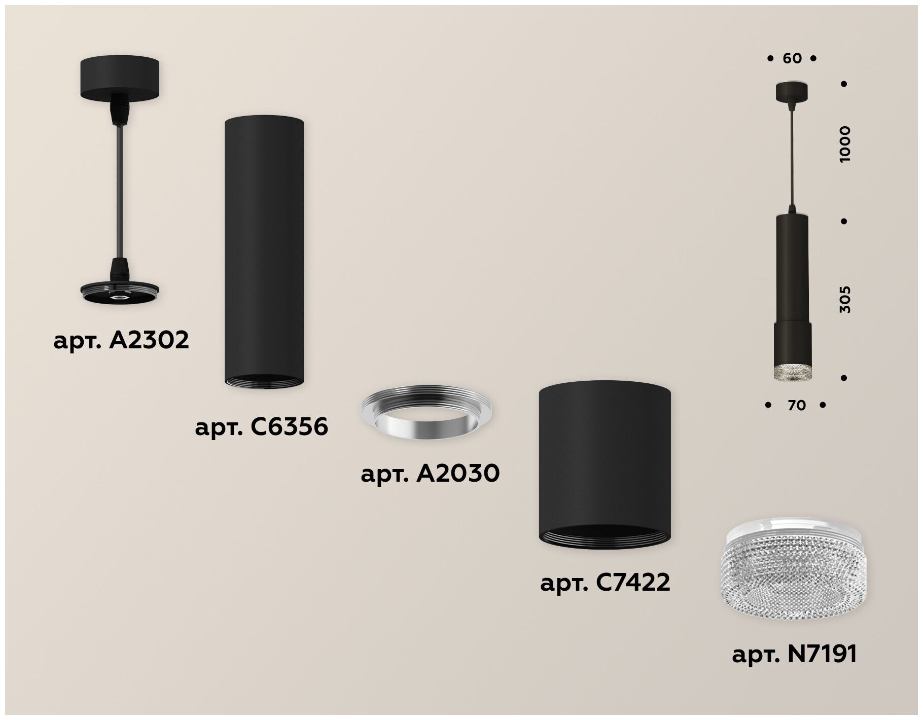 Сервис сравнения цен СкидкаГИД предлагает сравнить цены на товар «Комплект подвесного светильника Ambrella light Techno Spot SBK/CL черный песок/прозрачный (A2302 C6356 A2030 C7422 N7191) XP7422001»