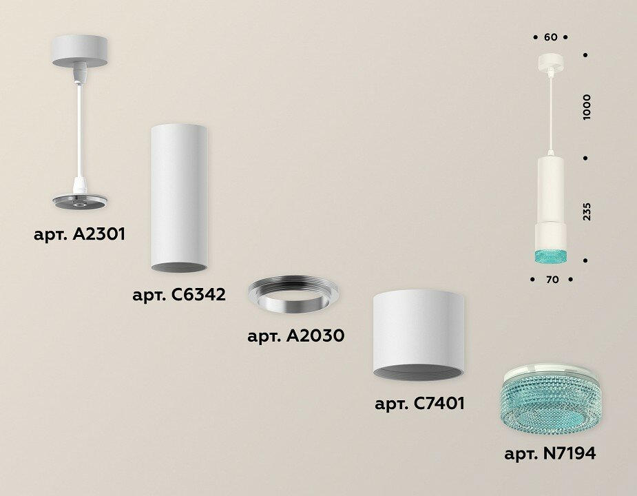 Комплект подвесного светильника Ambrella light Techno Spot SWH/BL белый песок/голубой (A2301 C6342 A2030 C7401 N7194) XP7401004