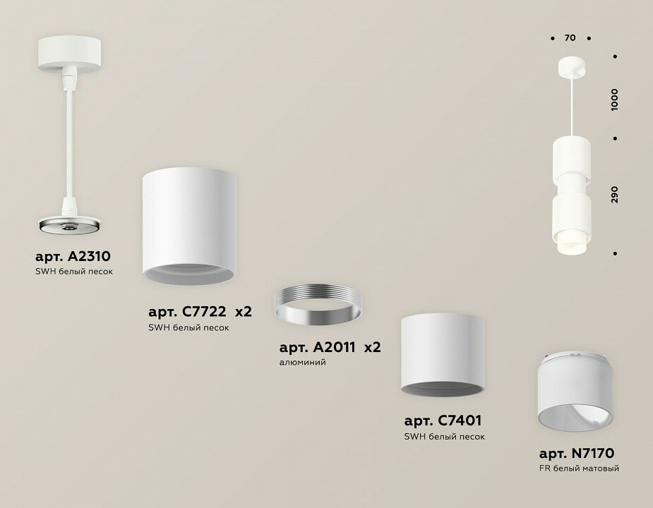 Сервис сравнения цен СкидкаГИД предлагает сравнить цены на товар «Комплект подвесного светильника Ambrella light Techno Spot SWH/FR белый песок/белый матовый (A2310C7722A2011C7401A2011C7722N7170) XP7722032»