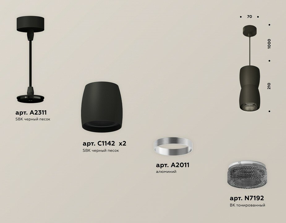 Сервис сравнения цен СкидкаГИД предлагает сравнить цены на товар «Комплект подвесного светильника Ambrella light Techno Spot SBK/BK черный песок/тонированный (A2311 C1142 A2011 C1142 N7192) XP1142032»