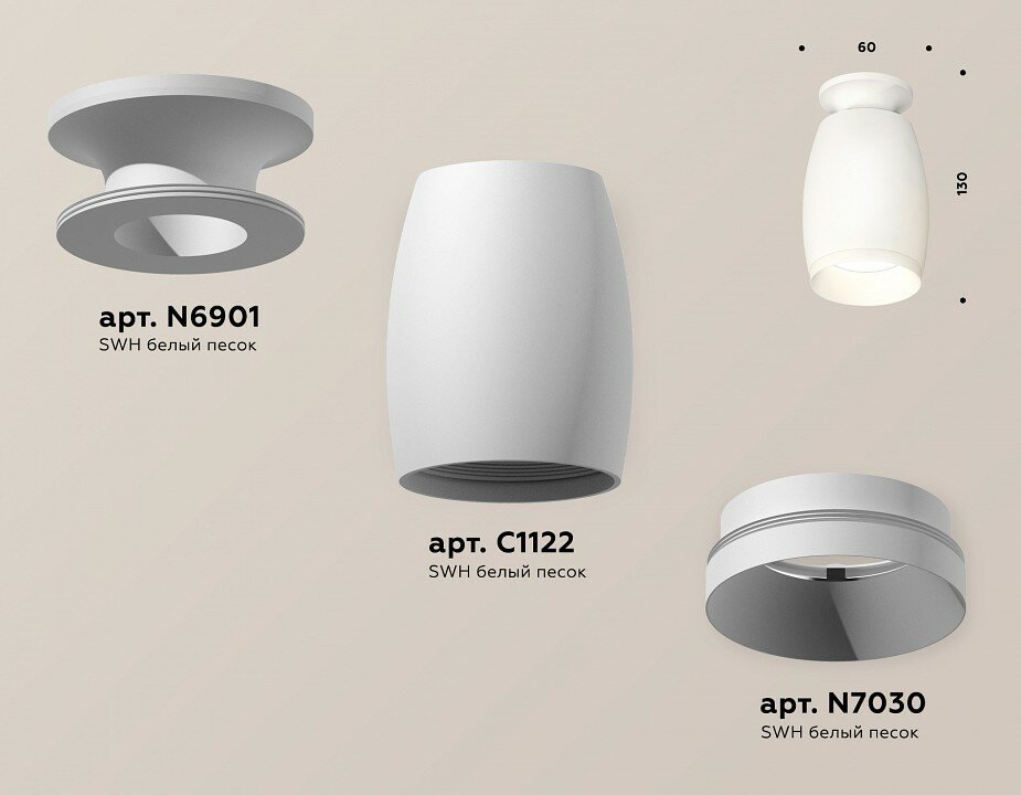 Комплект накладного светильника Ambrella light Techno Spot SWH белый песок (N6901 C1122 N7030) XS1122040