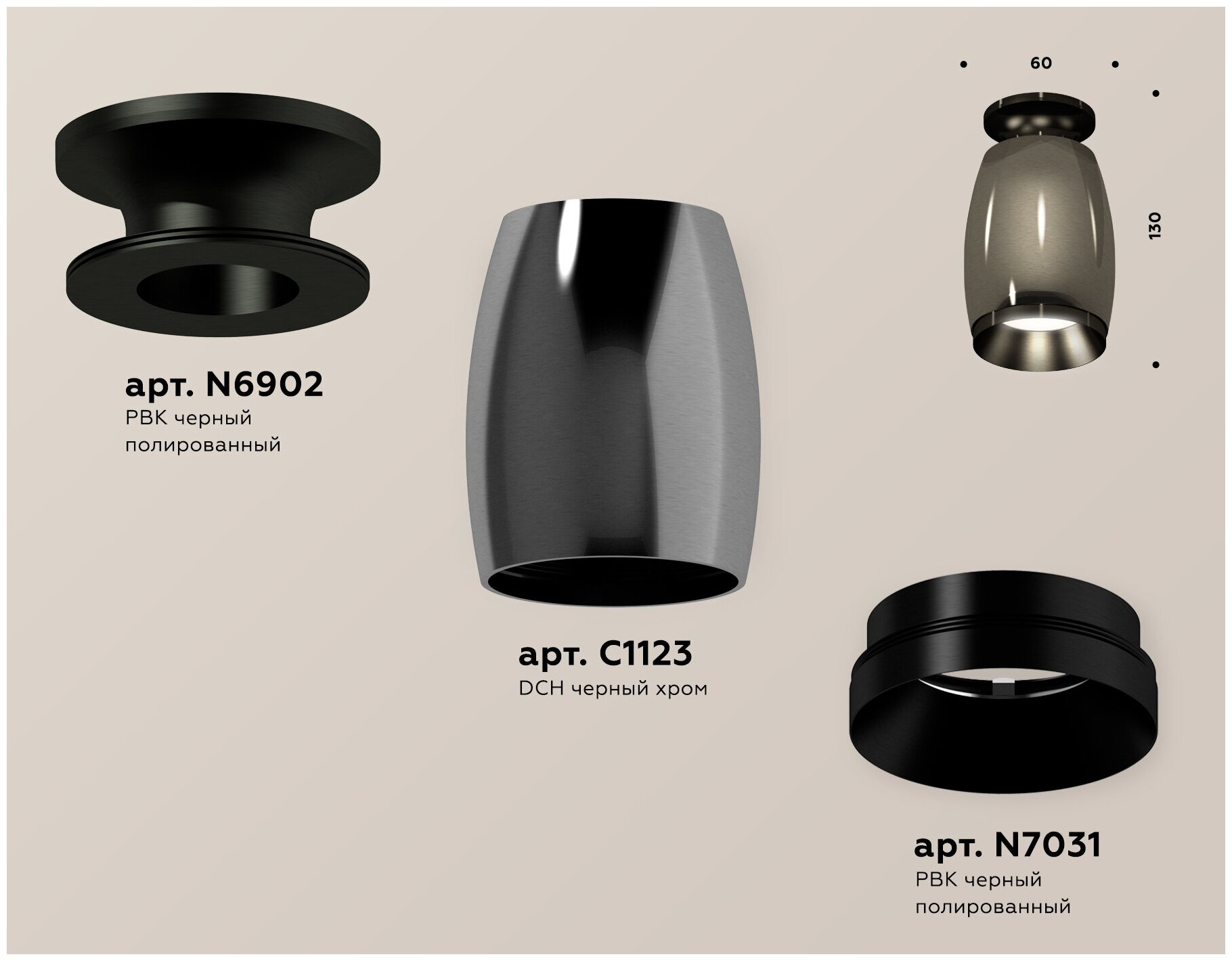 Комплект накладного светильника Ambrella light Techno Spot DCH/PBK черный хром/черный полированный (N6902 C1123 N7031) XS1123042