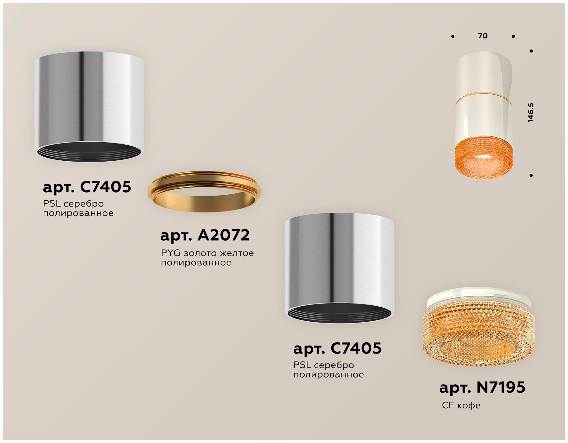 Комплект накладного светильника Ambrella light Techno Spot PSL/CF серебро полированное/кофе (C7405 A2072 C7405 N7195) XS7405062
