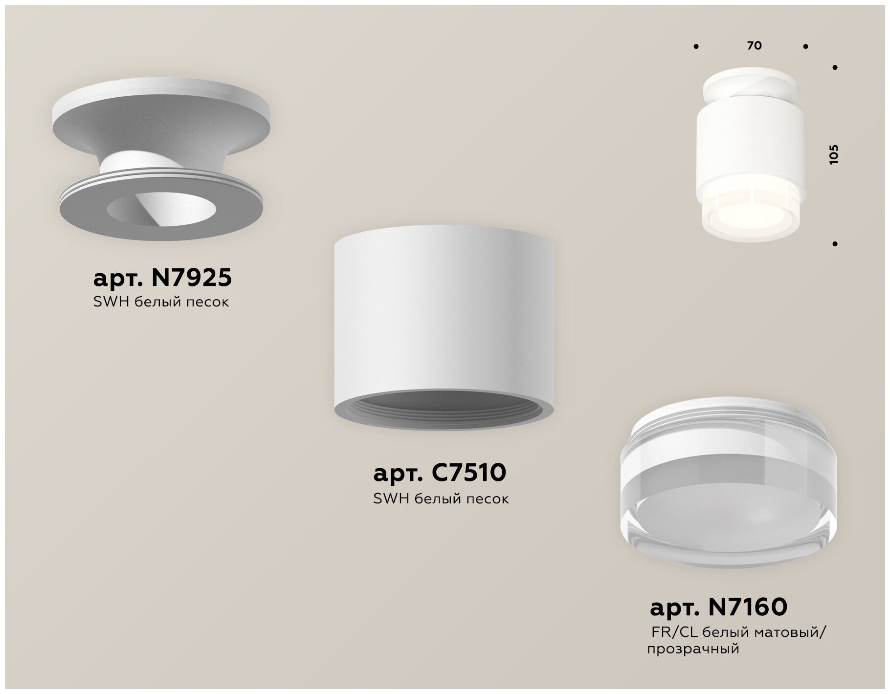 Комплект накладного светильника Ambrella light Techno Spot SWH/FR/CL белый песок/белый матовый/прозрачный (N7925 C7510 N7160) XS7510045