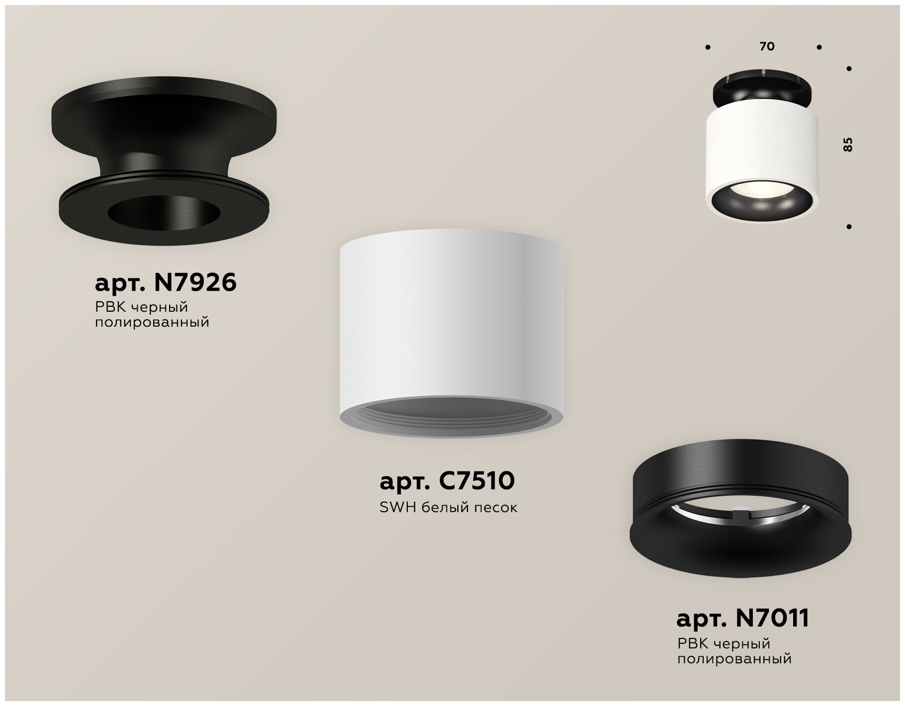 Комплект накладного светильника Ambrella light Techno Spot SWH/PBK белый песок/черный полированный (N7926 C7510 N7011) XS7510061