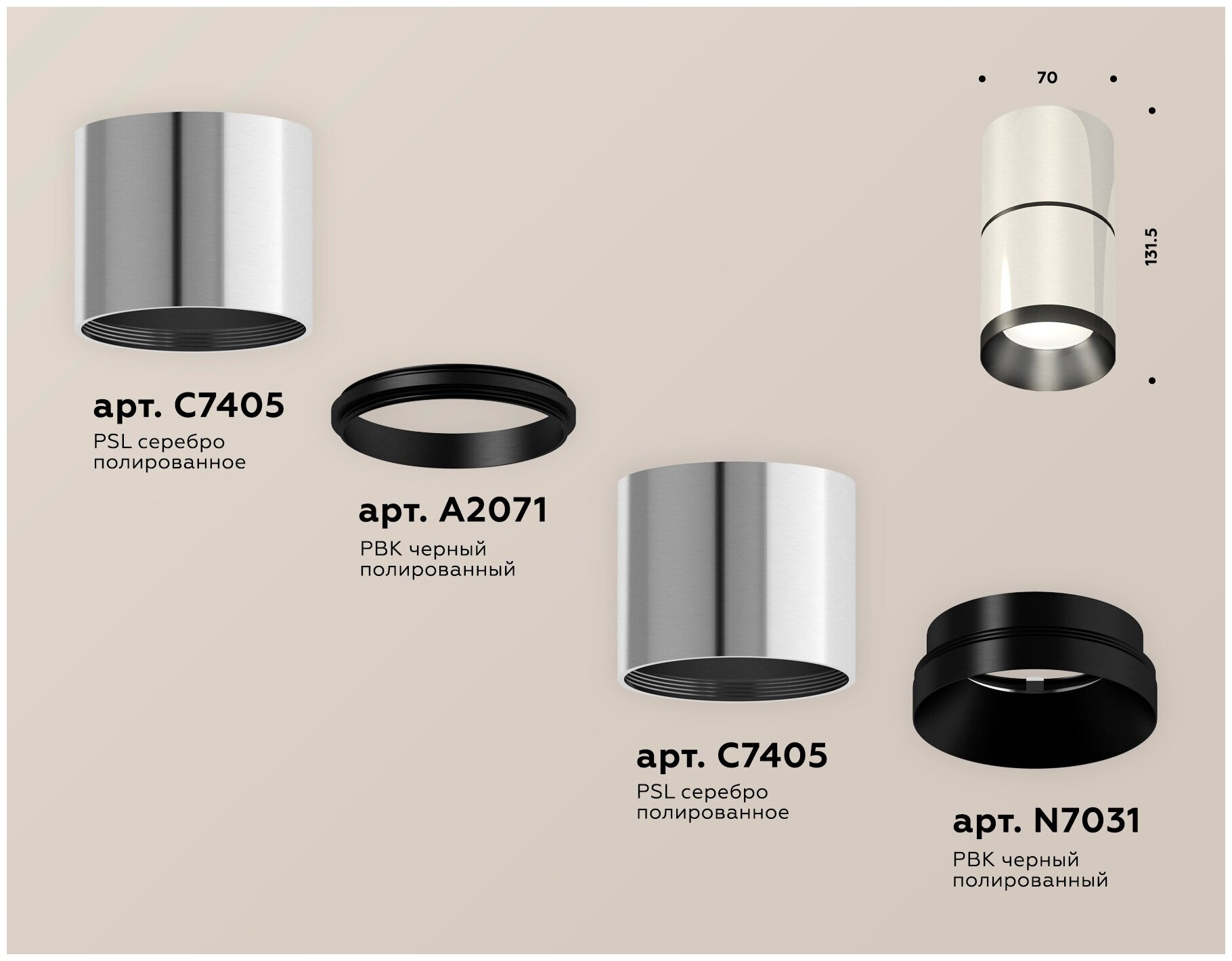 Комплект накладного светильника Ambrella light Techno Spot PSL/PBK серебро полированное/черный полированный (C7405 A2071 C7405 N7031) XS7405041
