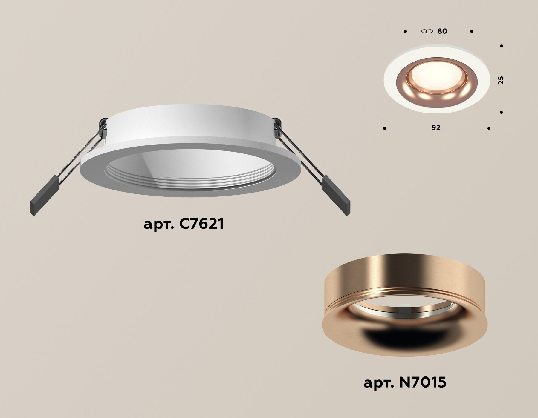 Комплект встраиваемого светильника Ambrella light Techno Spot SWH/PPG белый песок/золото розовое полированное (C7621 N7015) XC7621006
