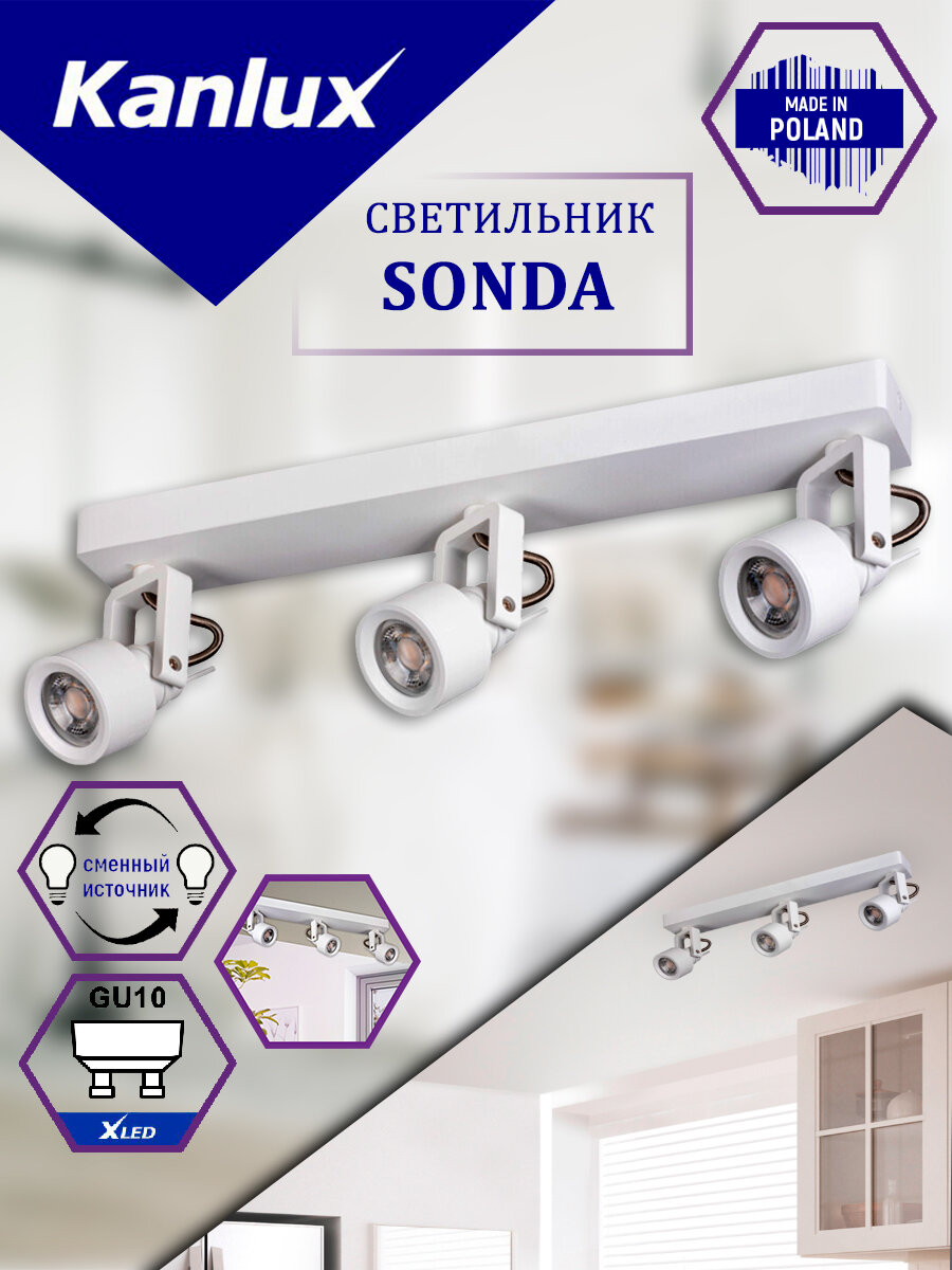Kanlux SONDA II - это современные споты в строгом стиле. Современная форма этих светильников станет уникальным украшением любого интерьера. Дополнительным преимуществом ламп Kanlux SONDA II является чрезвычайно элегантная отделка абажура, которая скрывает края источника света, так что видна только линза лампы.