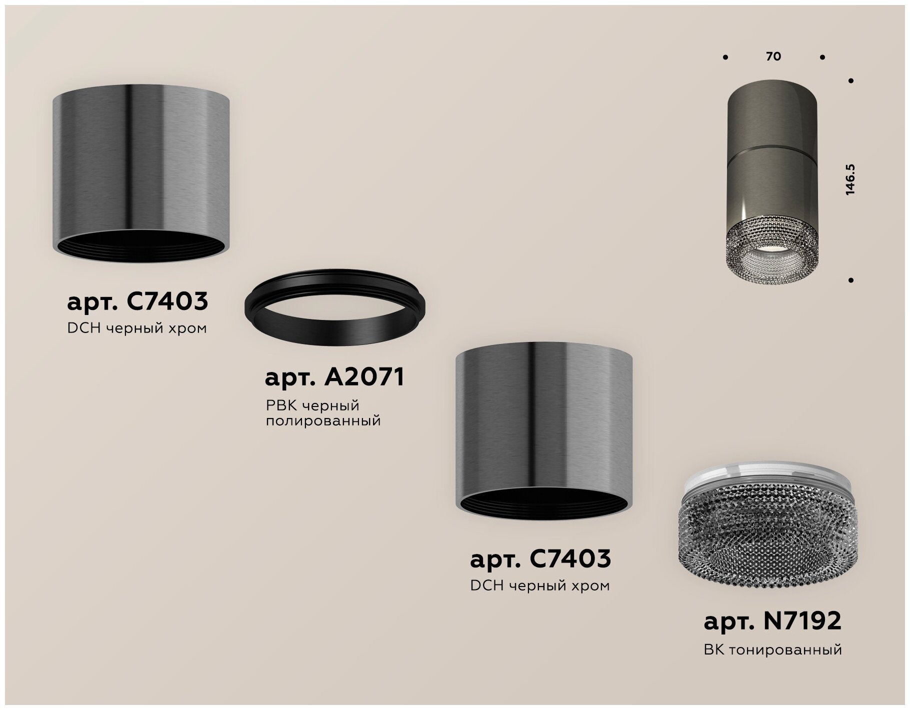 Комплект накладного светильника Ambrella light Techno Spot DCH/BK черный хром/тонированный (C7403 A2071 C7403 N7192) XS7403062