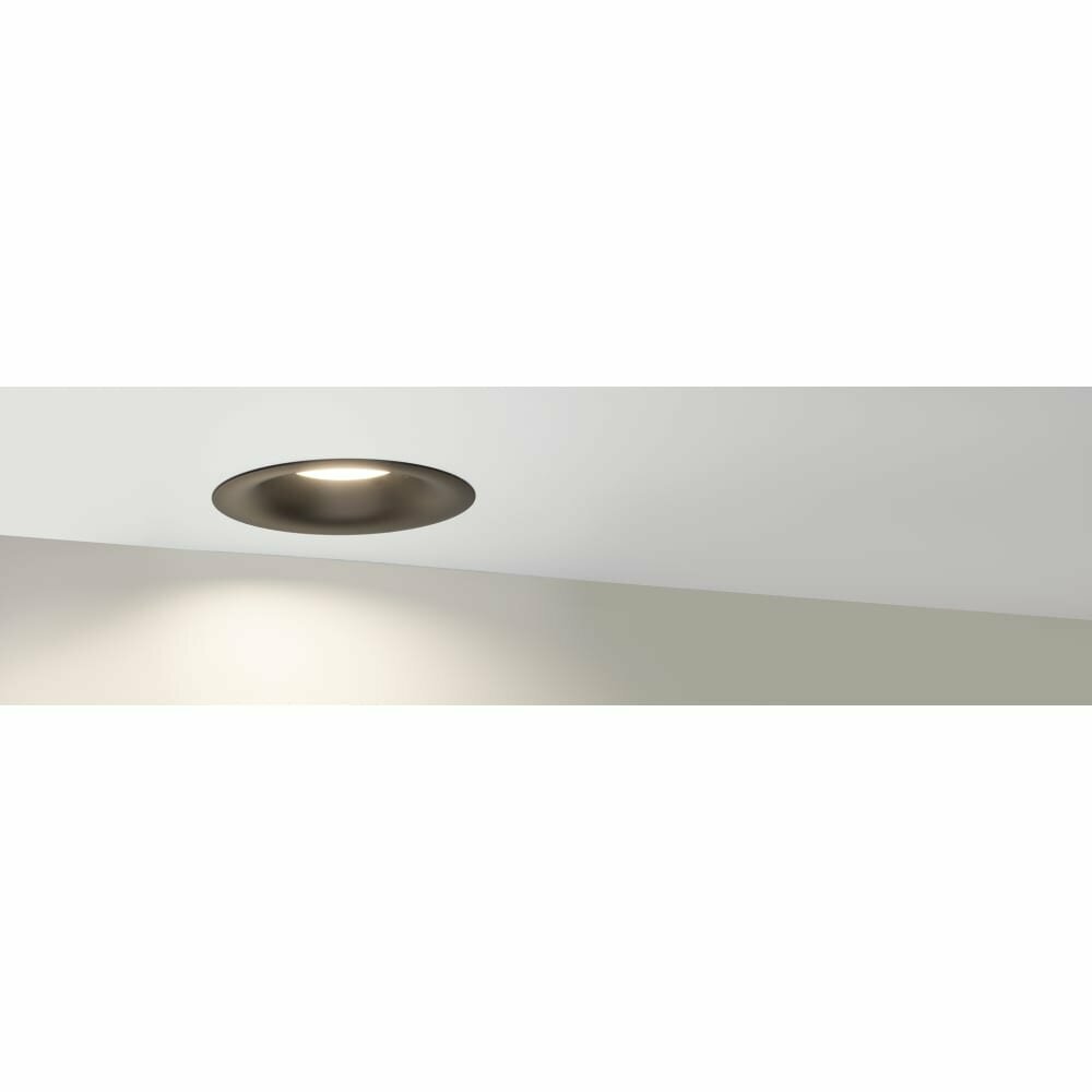 Встраиваемый светильник даунлайт. Мощность 7.5 Вт, св. поток 600 лм, 80 лм/Вт, теплый 3000 K, CRI>90, угол 100°, напряжение питания 230 В. Белый круглый корпус из алюминия, степень защиты IP20. Размер: диаметр 102 мм, высота 63 мм. Монтаж встраиваемый, установочное отверстие: диаметр 90 мм. Пульсация
