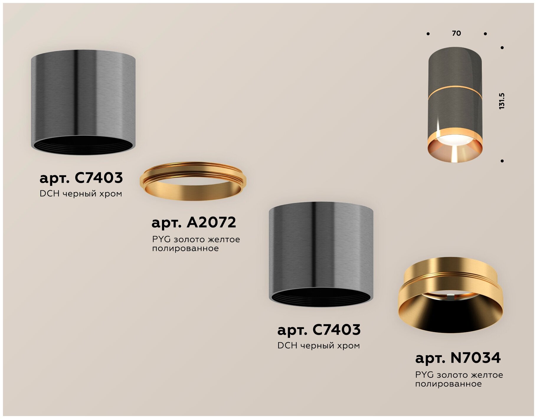 Комплект накладного светильника Ambrella light Techno Spot DCH/PYG черный хром/золото желтое полированное (C7403 A2072 C7403 N7034) XS7403081