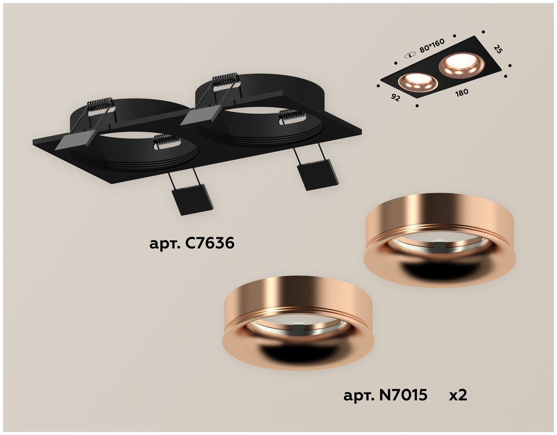 | Дополнительные характеристики | встраиваемый корпус 180*92 (цоколь GU5.3 в комплекте), насадка передняя D70 (2шт.) |