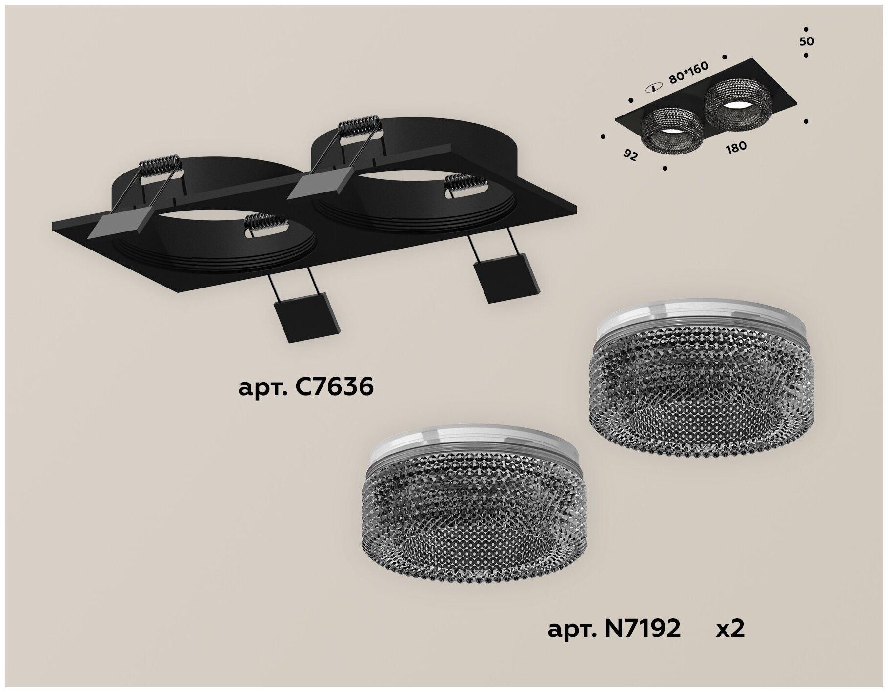 Комплект встраиваемого светильника Ambrella light Techno Spot SBK/BK черный песок/тонированный (C7636 N7192) XC7636021