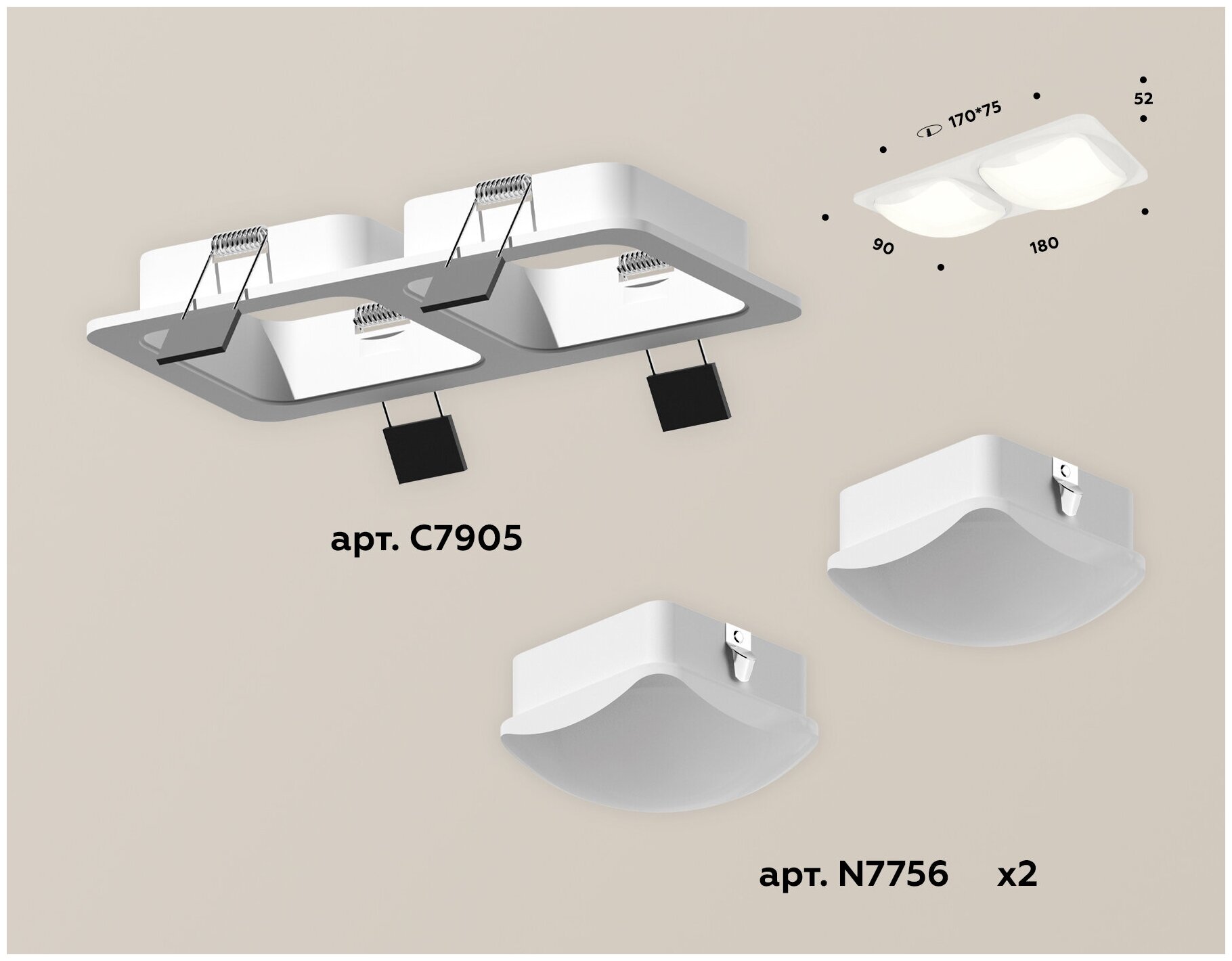 | Дополнительные характеристики | встраиваемый корпус 180*90 (цоколь GU5.3 в комплекте), насадка передняя 70*70 (2шт.) |