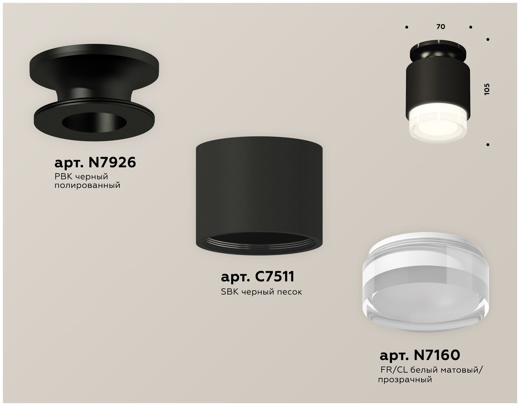 Комплект накладного светильника Ambrella light Techno Spot SBK/PBK/FR черный песок/черный полированный/белый матовый (N7926 C7511 N7160) XS7511065
