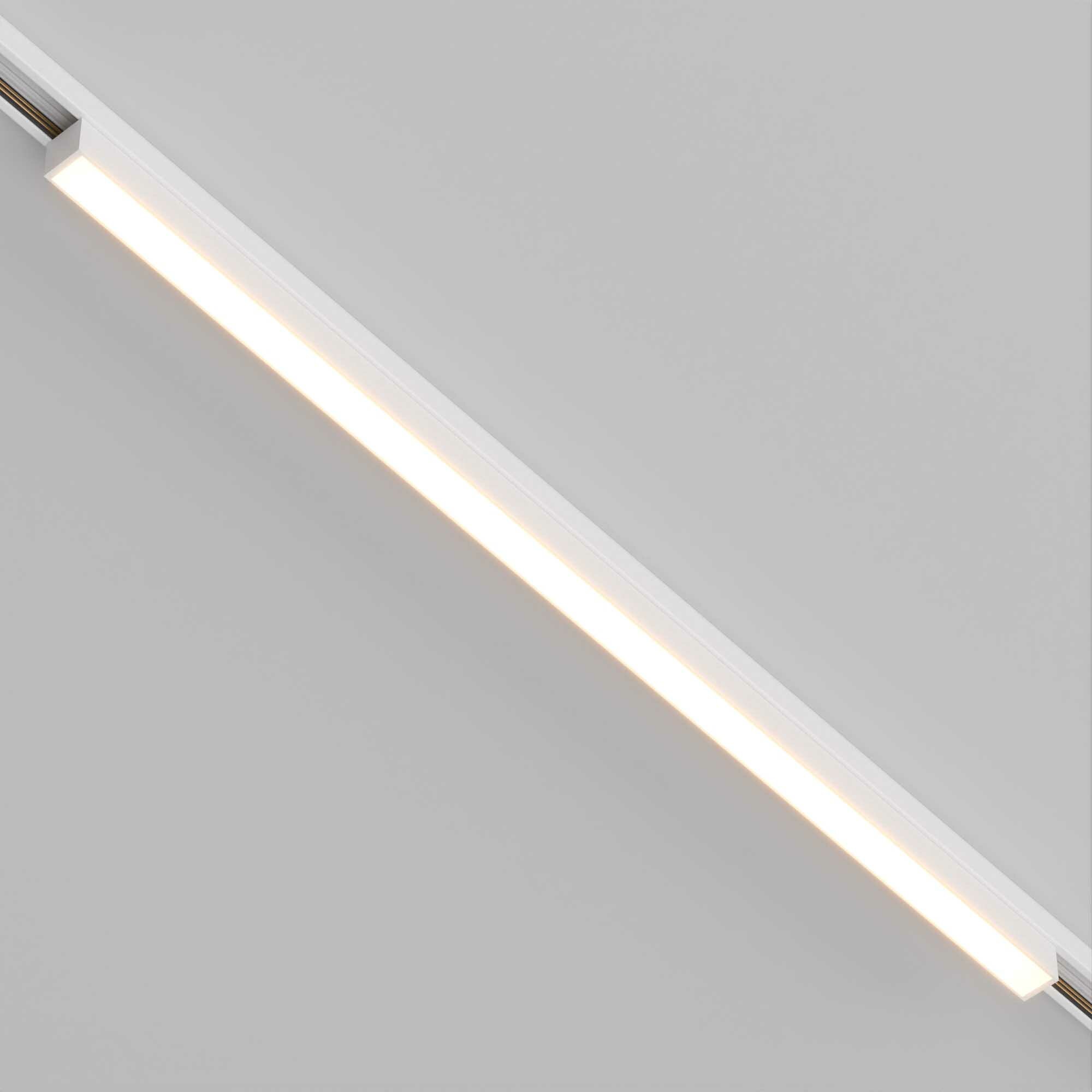 Светильник для магнитных треков MAG-ORIENT шириной 26 мм. Мощность 24 Вт, св. поток 1400 лм, 60 лм/Вт, дневной 4000 K, CRI>90, угол 80°, напряжение питания 48 В. Белый прямоугольный корпус из металл, экран поликарбонат, степень защиты IP20. Размер: длина 689.5 мм, ширина 22 мм, высота 42 мм. Монтаж на трек MAG-ORIENT. Пульсация