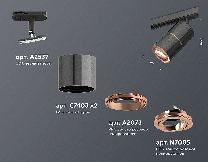 | Дополнительные характеристики | крепеж трековый D70, корпус накладной D70*2шт, коннектор D70, насадка передняя D70 |