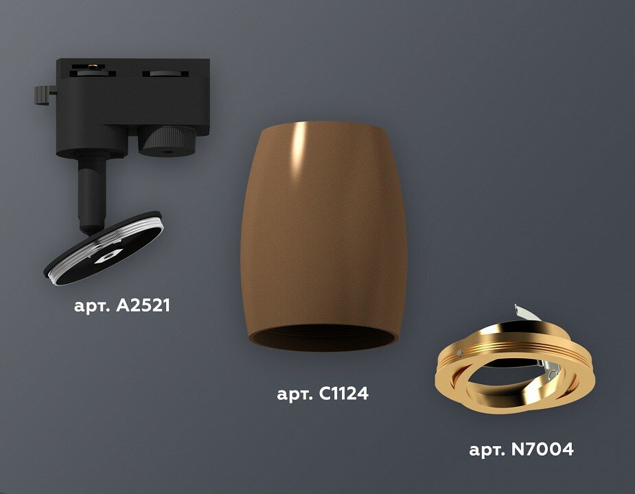 Комплект трекового светильника Ambrella light Track System SCF/PYG кофе песок/золото желтое полированное (A2521 C1124 N7004) XT1124004