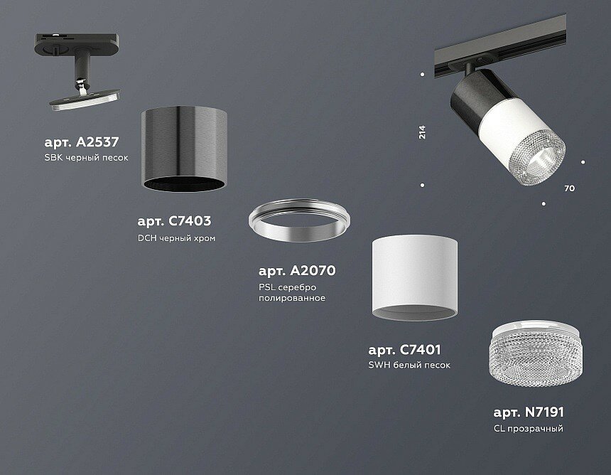 | Дополнительные характеристики | крепеж трековый D70, корпус накладной D70*2шт, коннектор D70, насадка передняя D70 |