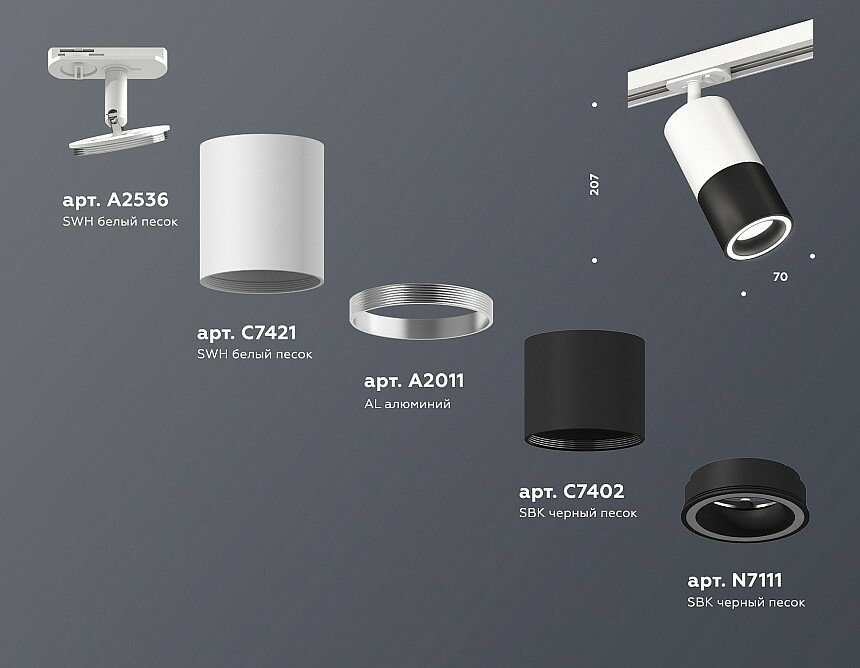 | Дополнительные характеристики | крепеж трековый D70, корпус накладной D70*2шт, коннектор скрытый D70, насадка передняя D70 |
