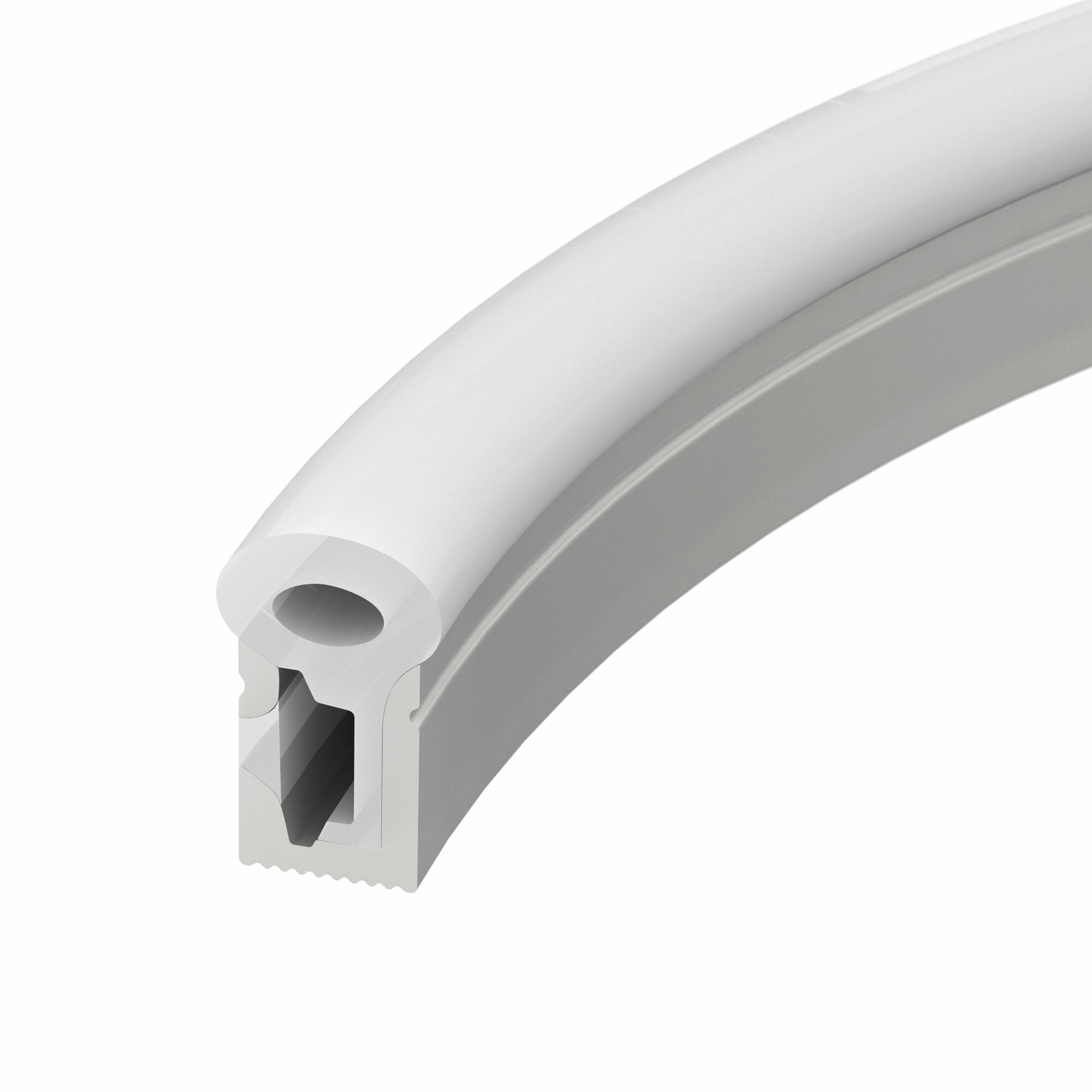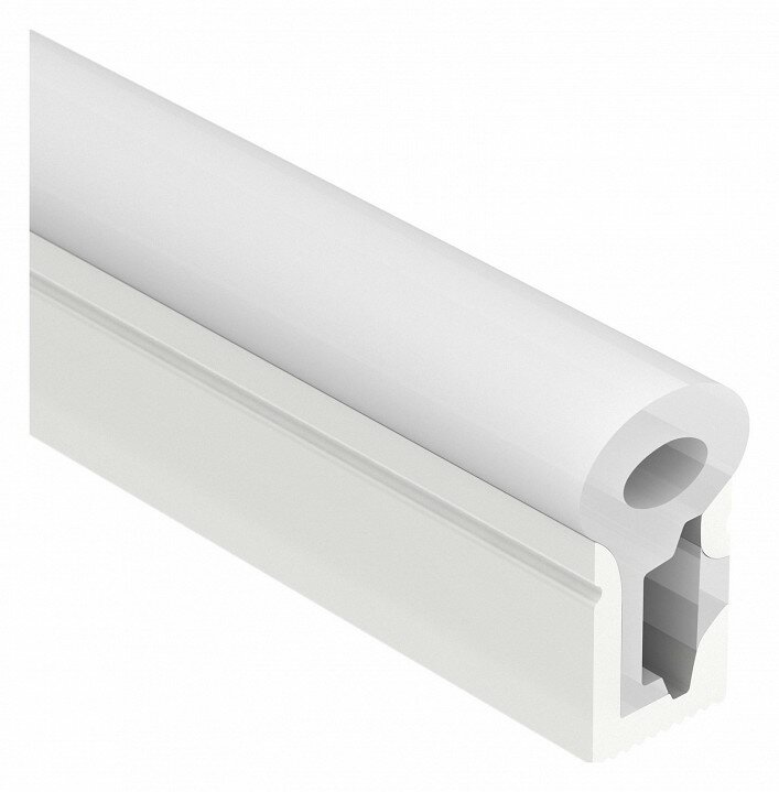 Цельнолитой силиконовый гибкий профиль, белый матовый. Габаритные размеры 10000×9,6×16,5 мм. Гнется в плоскости. Для установки во влажных помещениях необходима герметизация при помощи двухкомпонентного эпоксидного герметика. Класс пылевлагозащиты – IP65 (при соблюдении технологии герметизации). Для лент шириной 8 мм, высотой до 3 мм и мощностью до 10 Вт/м. Поставляется в катушках по 10 м. Цена за 1 м.