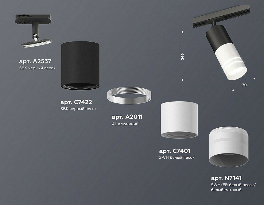 | Дополнительные характеристики | крепеж трековый D70, корпус накладной D70*2шт, коннектор скрытый D70, насадка передняя D70 |
