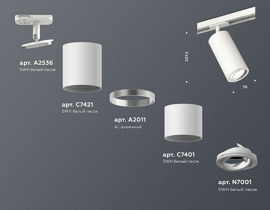 | Дополнительные характеристики | крепеж трековый D70, корпус накладной D70*2шт, коннектор скрытый D70, насадка передняя D70 |