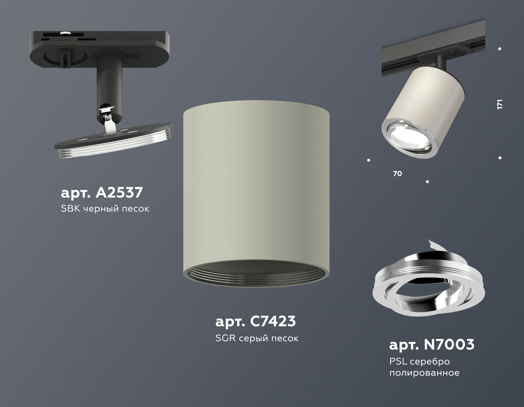 Комплект трекового светильника Ambrella light Track System SGR/PSL/SBK серый песок/серебро полированное/черный песок (A2537 C7423 N7003) XT7423001