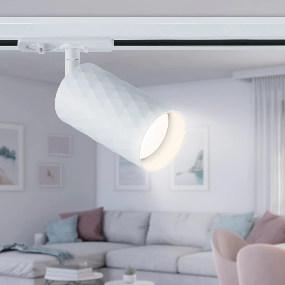 Трековый светильник светодиодный однофазный Ambrella Light под одну лампочку с цоколем GU10 максимальной мощностью 12 Вт (приобретается отдельно). Имеет форму цилиндра, поворотный плафон. Изготовлен из металла. Размеры: длина плафона 10 см, диаметр плафона 5,5 см, общая высота 16 см. Трековый потолочный поворотный спот, напоминающий прожектор, с легкостью заменит настенное бра, люстру или настольную лампу. Трек - это отличное решение для натяжного или подвесного потолка. Он идеален для создания направленного освещения или зонирования в комнате, например подсветки кухонной зоны или барной стойки. Универсальный комнатный спот можно установить в прихожую, гостиную, кухню, детскую или спальню. Стильная модель станет дизайнерским украшением домашнего интерьера, оформленного в стиле минимализм или лофт. Точечный источник света - это современная классика! Система спотов станет украшением вашего дома.