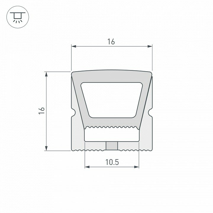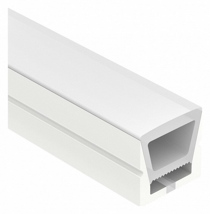 Цельнолитой силиконовый гибкий профиль, белый матовый. Габаритные размеры 20000×16×16 мм. Гнется в плоскости. Для установки во влажных помещениях необходима герметизация при помощи двухкомпонентного эпоксидного герметика. Класс пылевлагозащиты – IP65 (при соблюдении технологии герметизации). Для лент шириной от 10 до10,5 мм, высотой до 2,85 мм и мощностью до 10 Вт/м. Поставляется в катушках по 20 м. Цена за 1 м.
