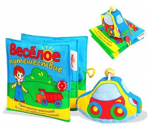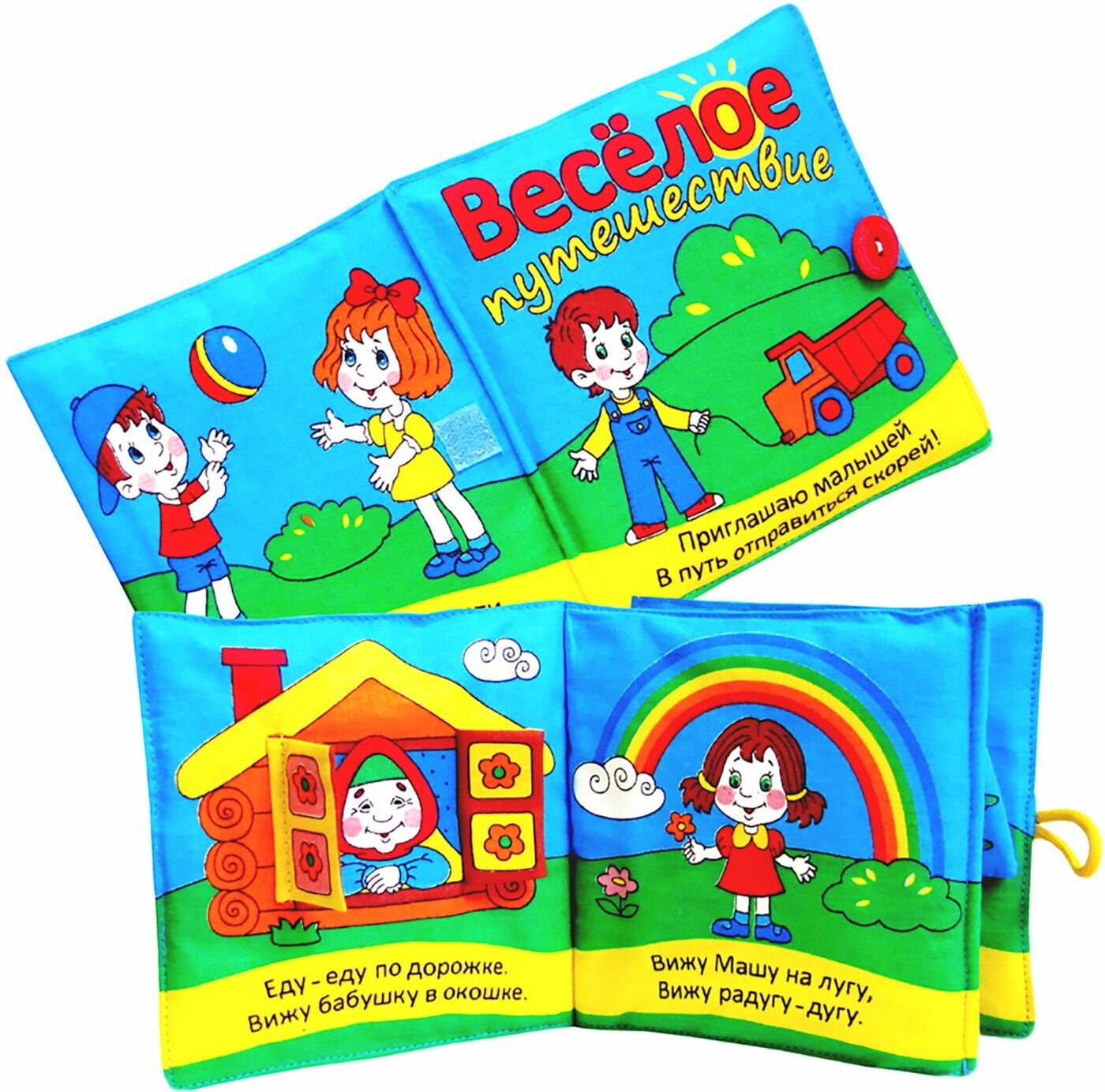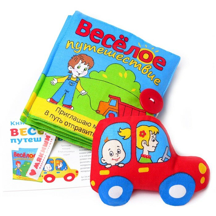 Мягкая развивающая книжка Весёлое путешествие - это первое знакомство малыша с удивительным миром книг. Забавные стихи о приключениях машинки от И.В. Мальцевой, интересные иллюстрации, удобный размер, мягкие и безопасные материалы, чистые цвета, звуковые, сенсорные и зрительные эффекты с лёгкостью помогут вашему малышу познавать мир! Каждая страничка интерактивной книжки уникальна: уточка пищит, мягкая ёлочка поднимается и за ней растут грибочки, окошко в домике шуршит и открывается, внутри машинки погремушка. Малыш научится различать цвета и формы, а разные материалы будут способствовать развитию тактильных и моторных навыков