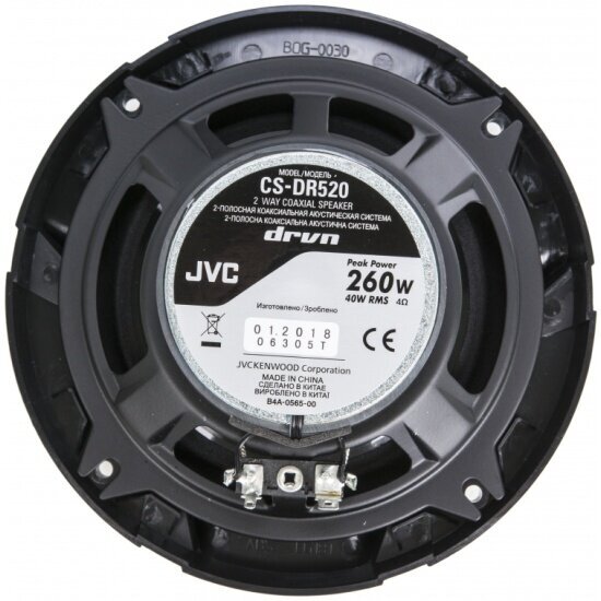 Коаксиальные колонки автомобильные JVC CS-DR520 имеют современный дизайн, который отлично впишется в салон любого авто. Двухполосная модель устройства обеспечивает чистый, безопасный звук до 88 дБ. Максимальная мощность в 260 Вт позволит устанавливать эти динамики на машины разного типа, а номинальную мощность в 40 Вт способна обеспечить даже электросеть микролитражки.