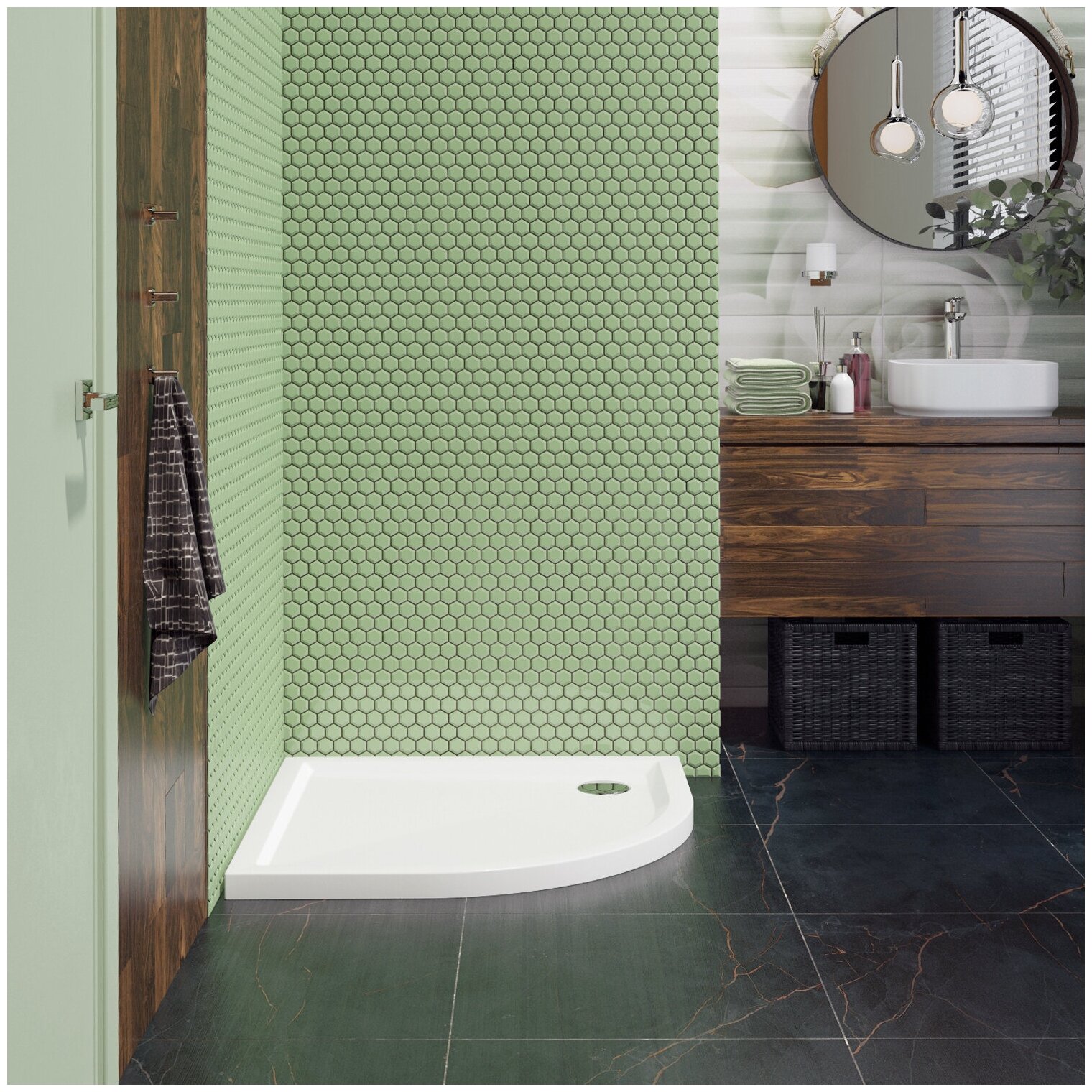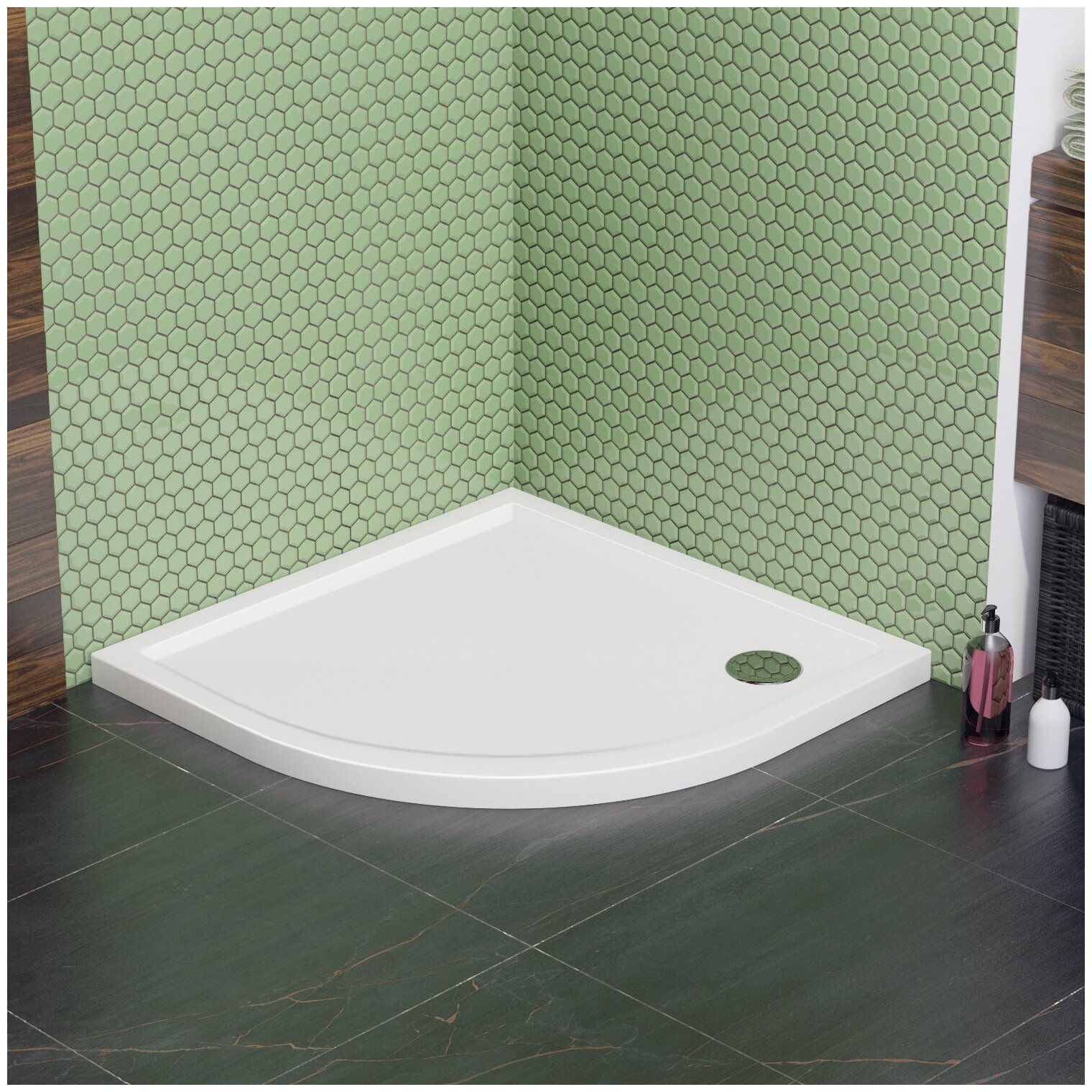 Душевой поддон Lavinia Boho One 90х90 3701290S. Элегантный душевой поддон формой четверть круга выделяется необычной полукруглой геометрией и станет стильным элементом ванной комнаты, где раньше господствовали исключительно прямые линии. Скругленная форма чрезвычайно компактна и может стать незаменимым решением в небольшой ванной. Технология производства обеспечивает изделию особую прочность и долговечность. В процессе производства на материал наносится безопасное антибактериальное покрытие OutBac, предотвращающее рост и размножение некоторых видов бактерий и плесени в душевой зоне. Приятная на ощупь, тёплая структура акрила с первых минут приобретает температуру человеческого тела, что исключает дискомфорт от соприкосновения с поддоном. Стойкий акриловый лист долго сохраняет свой блеск благодаря использованию высококачественных материалов в производстве. Акрил отлично поддается полировке, сохраняя идеальный глянец на протяжении всего срока службы. Поддон для душа имеет прекрасное сочетание глянцевого цвета со всеми коллекциями керамики Lavinia Boho. Комплектация: душевой поддон; сифон; инструкция по монтажу и эксплуатации; гарантийный талон