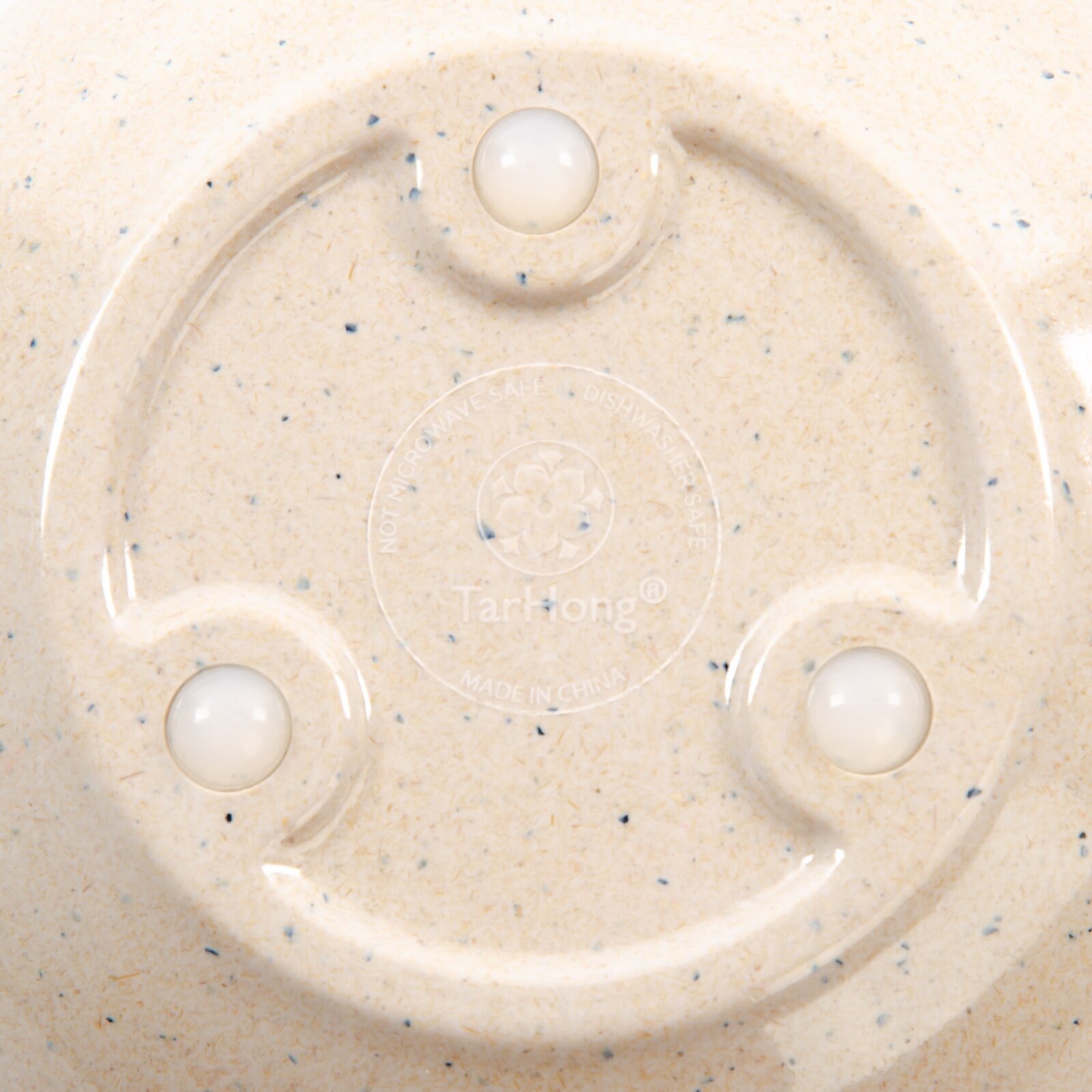 Миска выполнена из особого запатентованного и сертифицированного материала Planta, в котором смешаны меламин, натуральный бамбуковый порошок и кукурузный крахмал. В результате получился легкий пластик, темный по своей природе, с красивой естественной текстурой и великолепными свойствами. Прочность и плотность этого материала обеспечивает изделиям стойкость к царапинам, предотвращает растрескивание и снижает ломкость, при этом сохраняется небольшой вес, а внешне изделия неотличимы от керамических. Миска легко очищается обычными моющими средствами, также её можно мыть в посудомоечной машине. Донышко снабжено силиконовыми элементами, препятствующими скольжению, а продуманная форма предотвращает переворачивание.