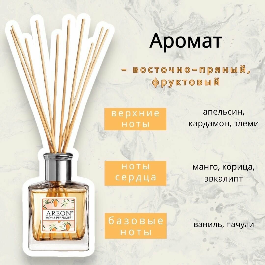 Диффузор ароматический AREON HOME PERFUME STICKS GARDEN 50мл MANGO BHP-07 HOME PERFUME STICKS GARDEN Mango 50 ML