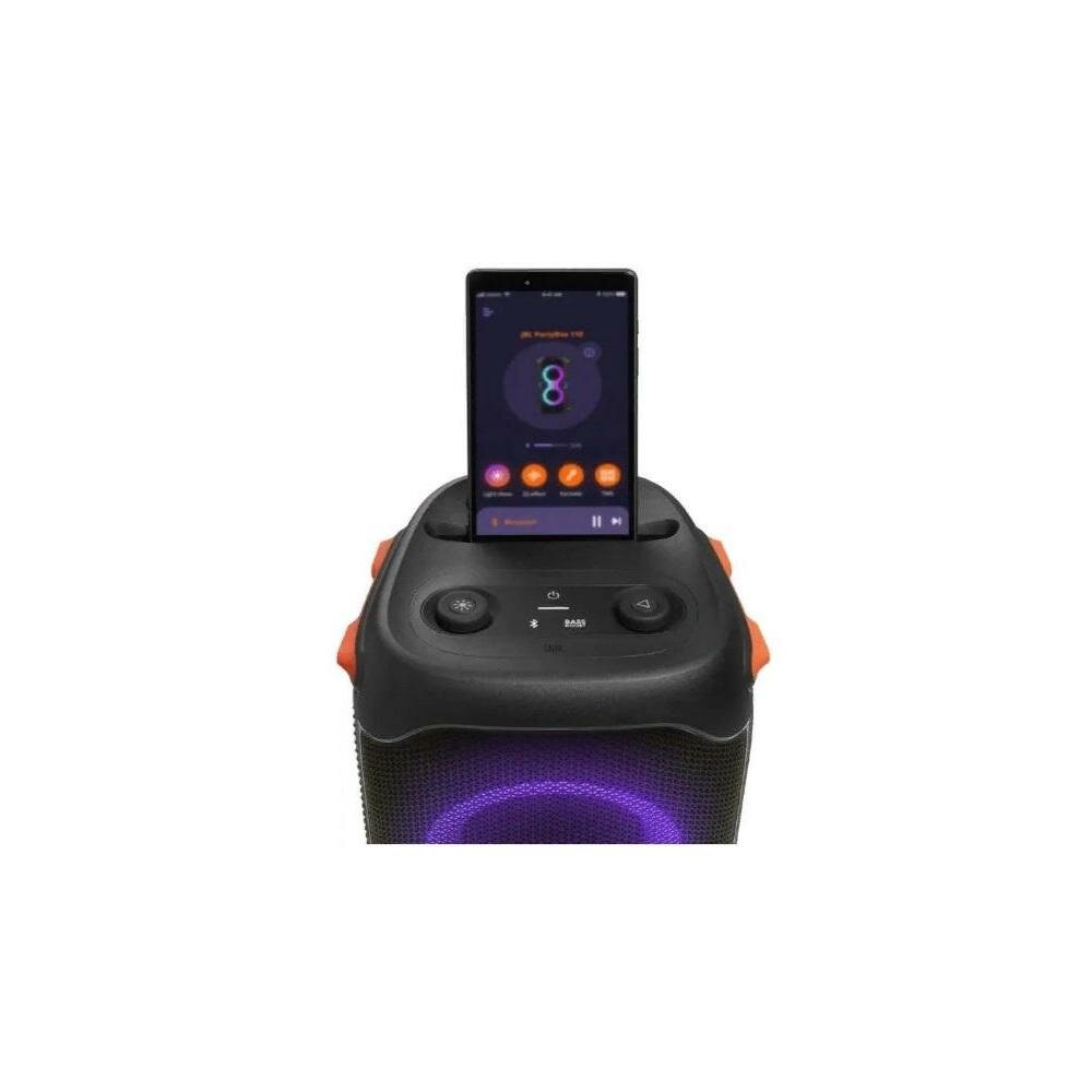 Мощный звук JBL Original Pro JBL PartyBox 110 обеспечивает превосходное звучание музыки в помещении и на открытом воздухе благодаря двум уровням глубоких регулируемых басов и мощному звуку JBL Original Pro. Динамическое световое шоу, синхронизированное с ритмом Любая музыка лучше с динамичным световым шоу! Цвета в такт музыке заставят вас пуститься в пляс, а настраиваемые стробы и проецируемые узоры усилят эффект полного погружения. Эта уникальная аудиовизуальная технология превратит любую вечеринку в произведение искусства. До 12 часов воспроизведения Вечеринка будет длиться весь день и всю ночь. Благодаря воспроизведению до 12 часов и встроенному перезаряжаемому аккумулятору музыка будет звучать без перерыва!