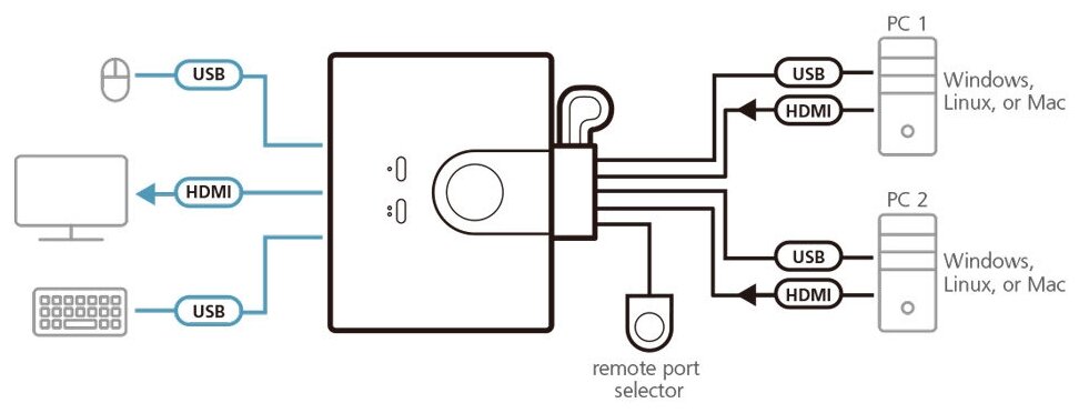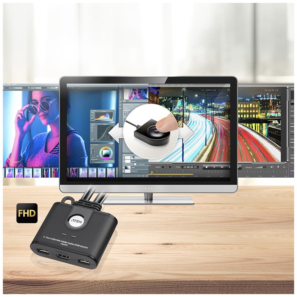 ATEN 2-Port USB FHD HDMI Cable KVM Switch