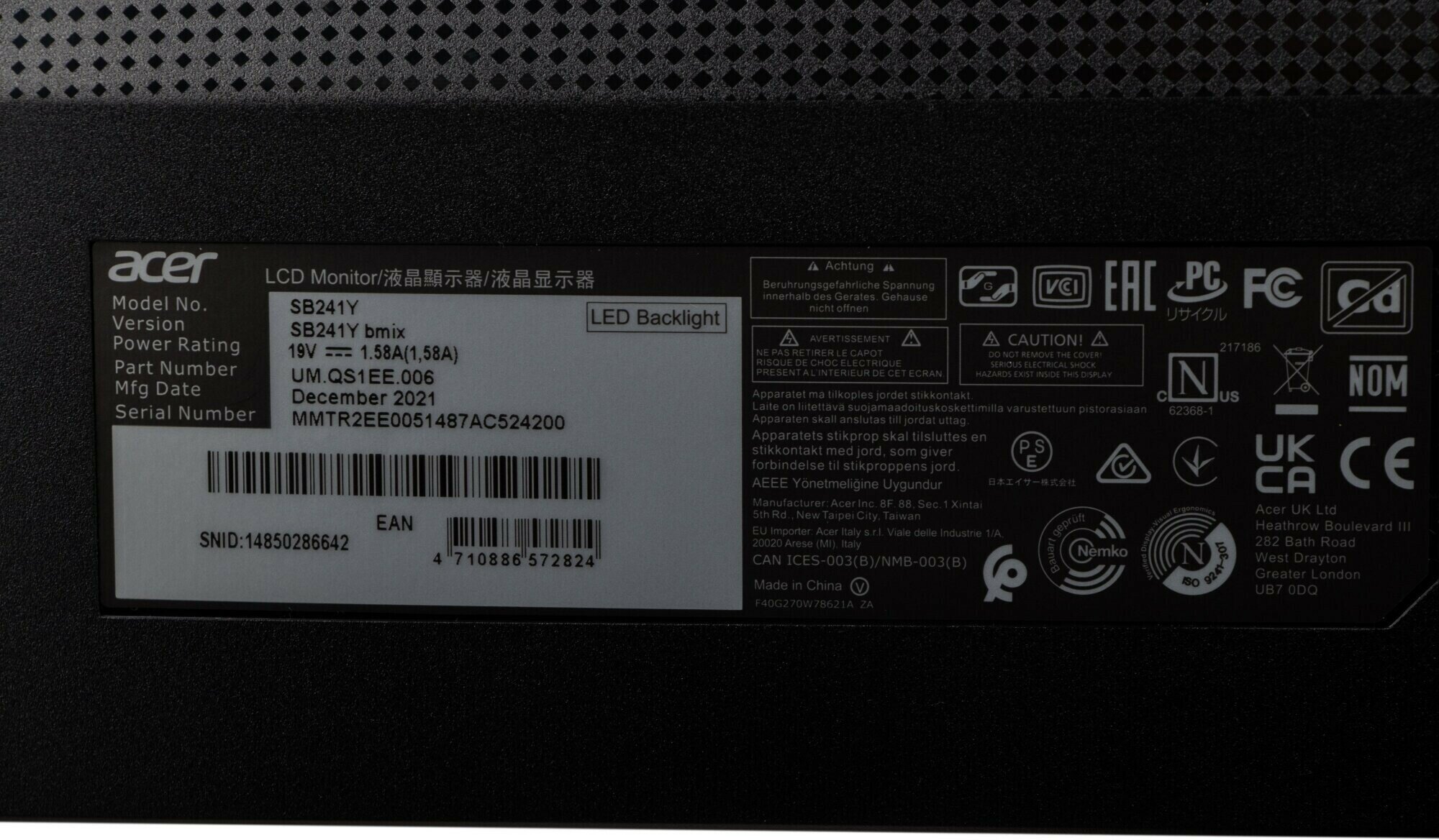 Монитор Acer UM.QB1EE.019