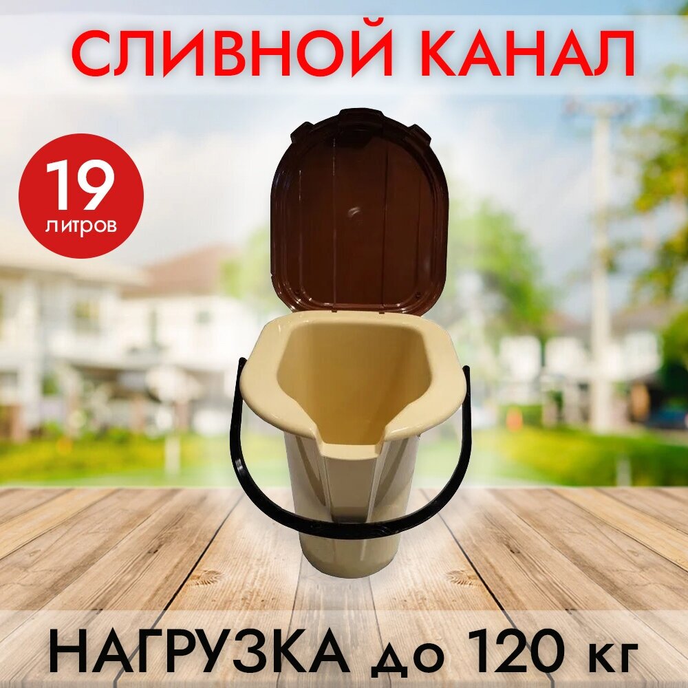 Полезный объем 19 литров. Габаритные размеры в упаковке 420 x 400 x 740 мм Ведро выполнено из полипропилена с увеличенной толщиной стенок и улучшенной устойчивостью, что позволяет пользоваться им человеку массой до 120 кг. Наличие канала для слива содержимого ведра-туалета оставляет всегда чистым сиденье, а также учитывает физиологию мужского организма. При сливе содержимого ведра не нужно снимать сиденье с крышкой и куда-то его класть, а достаточно просто откинуть крышку, что является дополнительным преимуществом данного ведра-туалета