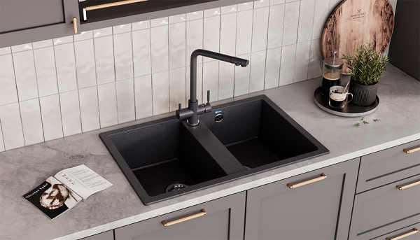 ULGRAN U-608 - двухсекционная кухонная мойка с отверстием под смеситель и двумя вместительными чашами. Данная мойка устанавливается в шкаф шириной от 80 см. В комплектацию входит сливная арматура с гофротрубой, технический паспорт и гарантийный талон. Существует возможность установки дозатора ULGRAN слева от смесителя - доп. отверстие в таком случае потребитель делает самостоятельно с помощью фрезы Форстнера (не входит в комплектацию и приобретается отдельно). Заводская гарантия составляет 2 года, а срок службы данной мойки, при соблюдении основных правил ухода за ней, составляет более 10 лет. Мойки ULGRAN изготавливаются на современном автоматизированном оборудовании по инжекционной технологии (литье под давлением) и имеют сравнительно малый вес при высокой прочности, что обеспечивает высокий уровень качества и комфортности. Благодаря сочетанию полиэфирных смол и натуральных мраморных наполнителей полученный композитный материал в 8 раз прочнее натурального мрамора, абсолютно экологичен и безопасен для здоровья человека. Декоративно-защитное покрытие - гелькоут не имеет микропор и не впитывает никакие бытовые загрязнения, устойчиво к ультрафиолету, имеет антибактериальные свойства и надежно защищает от механических повреждений. Мойки ULGRAN устойчивы к термическим воздействиям и кипятку, имеют отличное шумопоглощение при падении струи воды и увеличенное сопротивление внешнему износу (царапинам, ударам). Мойки просты в уходе и без труда чистятся неабразивными средствами, очень долго сохраняя свой цвет и первозданный внешний вид