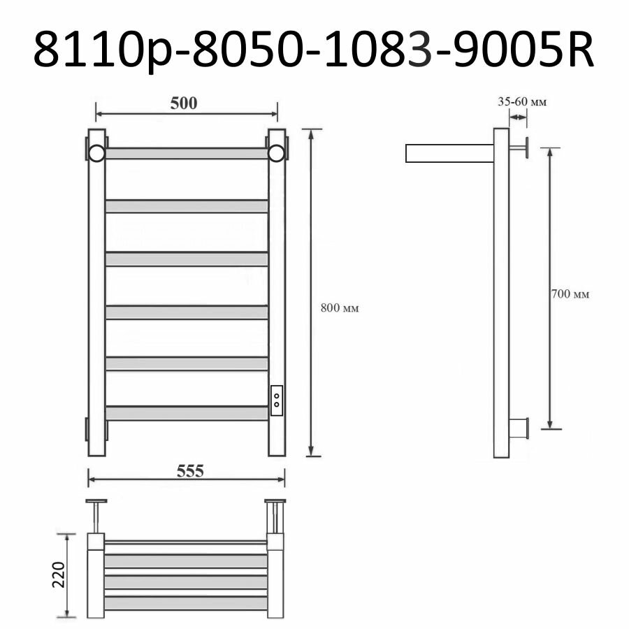 Полотенцесушитель электрический Маргроид Вид 81-10 60x50 R черный матовый (8110p-6050-1081-9005R)