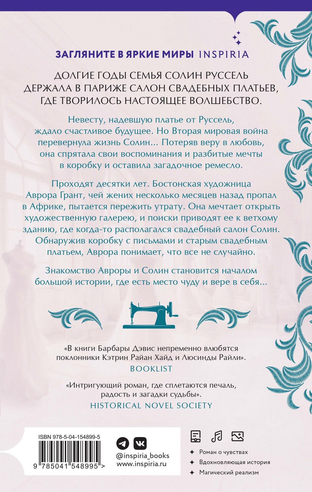 Долгие годы семья Солин Руссель держала в Париже салон свадебных платьев, где творилось настоящее волшебство. Невесту, надевшую платье от Руссель, ждало счастливое будущее. Но Вторая мировая война перевернула жизнь Солин… Потеряв веру в любовь, она спрятала свои воспоминания и разбитые мечты в коробку и оставила загадочное ремесло.